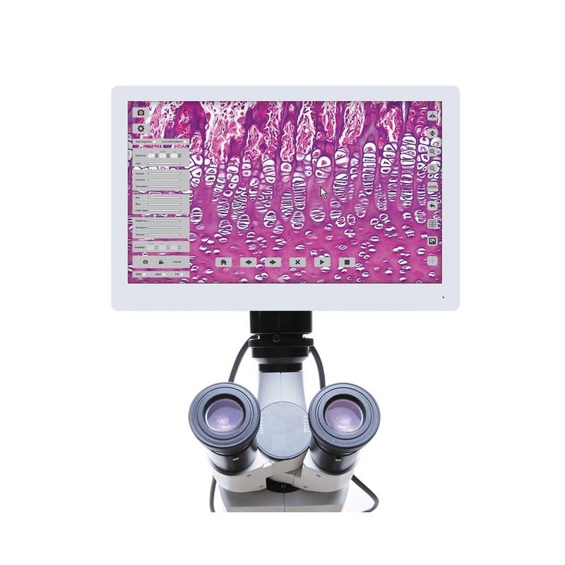 Permet l'exploitation directe des images issues de la caméra sur son écran 11.6" au dessus du microscope, sans avoir recours à un ordinateur ou à un écran complémentaire.